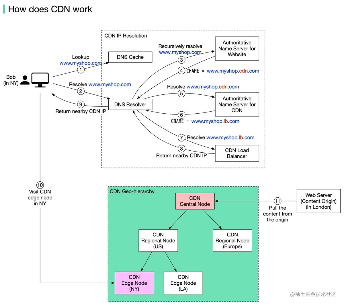 这是一个推文系列,配了很多张架构图,详细介绍了 CDN 的工作原理。