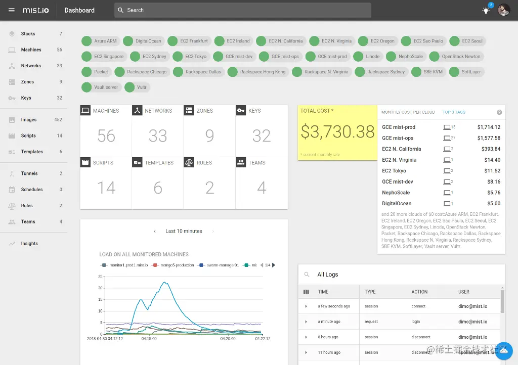 Mist 是一个开源的多云管理平台,它提供了跨云和内部基础设施的可观测性,以及生命周期管理能力。同时还提供了一些功能更强大的商业组件。