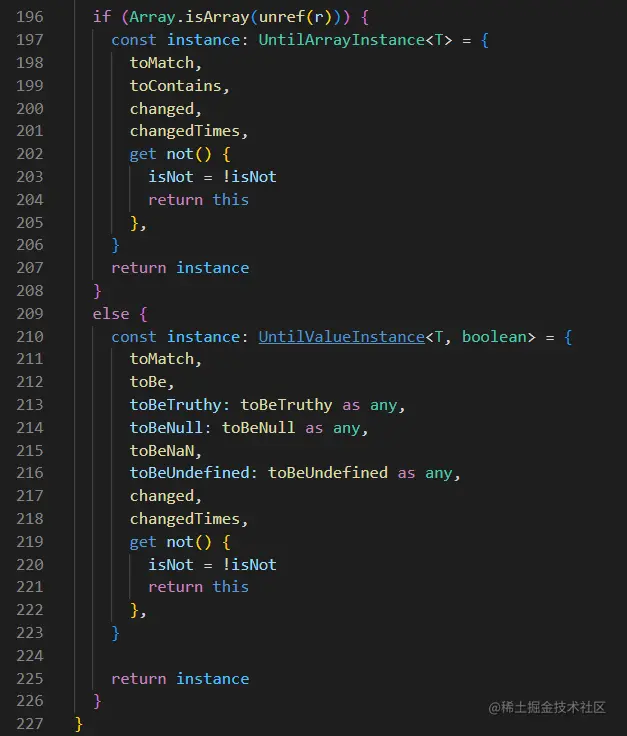 until的返回值分为两种情况:当监听的源数据是数组时和不是数组时,代码如下图所示: