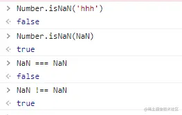 toBeTruthy和toBeNaN是对toMatch的封装,toBeNull和toBeUndefined是对toBe的封装。toBeTruthy判断是否为真值,方法是使用Boolean构造函数后判断参数v是否为真值。toBeNaN判断是否为NAN, 使用的是Number的isNaN作为判断条件,注意toBeNaN的实现不能使用toBe, 因为tobe在做比较的时候使用的是 ‘===’这对于NaN是不成立的: