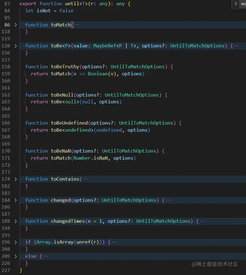 在之前的系列文章中我们介绍了vueuse对watch封装的一系列方法,以便我们可以更高效的开发。有对回调进行控制的watchWithFilter,有适用于当watch的值为真值时触发回调的whenever,还有只触发一次的watchOnce和最多触发一定次数的watchAtMost。但是我们最常用的场景可能是被观察的变量在满足某个具体条件时则触发回调,今天要学习的until就是直到满足某种条件时则触发一次回调函数。让我们通过示例代码和源码来研究一下吧~