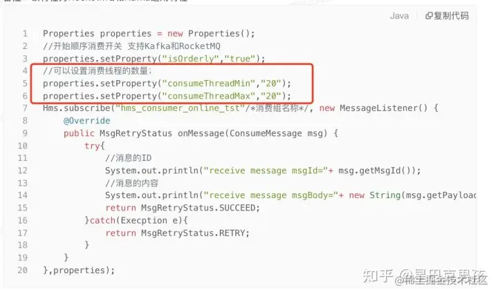 这两个参数,当下应用设置了5个,但我的机器配置是8核16G,参数设置是不合理的。这个参数主要是从其他项目中拷贝过来,没过多关注他,在高并发应用场景下,想不多却成为瓶颈,特别是消费线程内如果涉及到RT很高,QPS上不去的下游服务,就有讲究了。