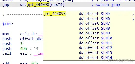 接着往上走,找到控制码,这里调用处前面的标号是$LN6