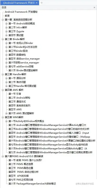 由于篇幅限制,下文仅展示部分内容,需要完整版可以点击下方微信卡片免费领取。 点击免费领取《Android Framework开发揭秘》
