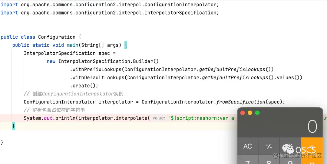 Apache Commons Configuration 是用于管理配置文件的组件,在 2.8 以前的部分版本中支持了多种变量取值方式,包括 javax.script、dns 和 url,导致可以执行任意代码或进行网络访问。