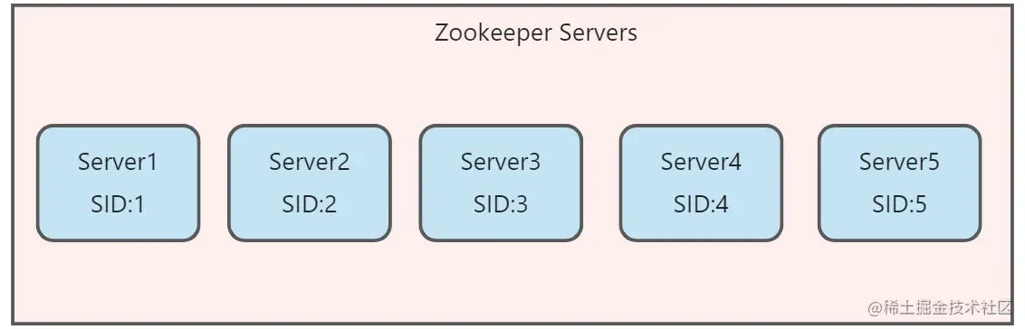 我们以5个Zookeeper节点作为例子,讲解下Leader选举的过程。