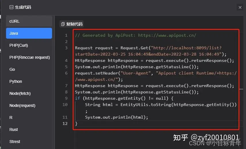 如果说是我们调试第三方接口的时候,只要调通了,直接一键生成,然后复制粘贴到我们的项目里面(当作单测直接改都不用改),当作正式代码使用就稍微优化一下,这可是可视化编程啊啊啊啊!!!!