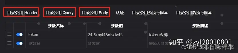 然后就是 可以去设置 公共的请求头参数 ,公共的Query参数,公共的Body参数 :
