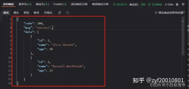 可以看到,接口http请求模拟成功 (这返回数据界面清晰明了,还是因为我代码写得好啊):