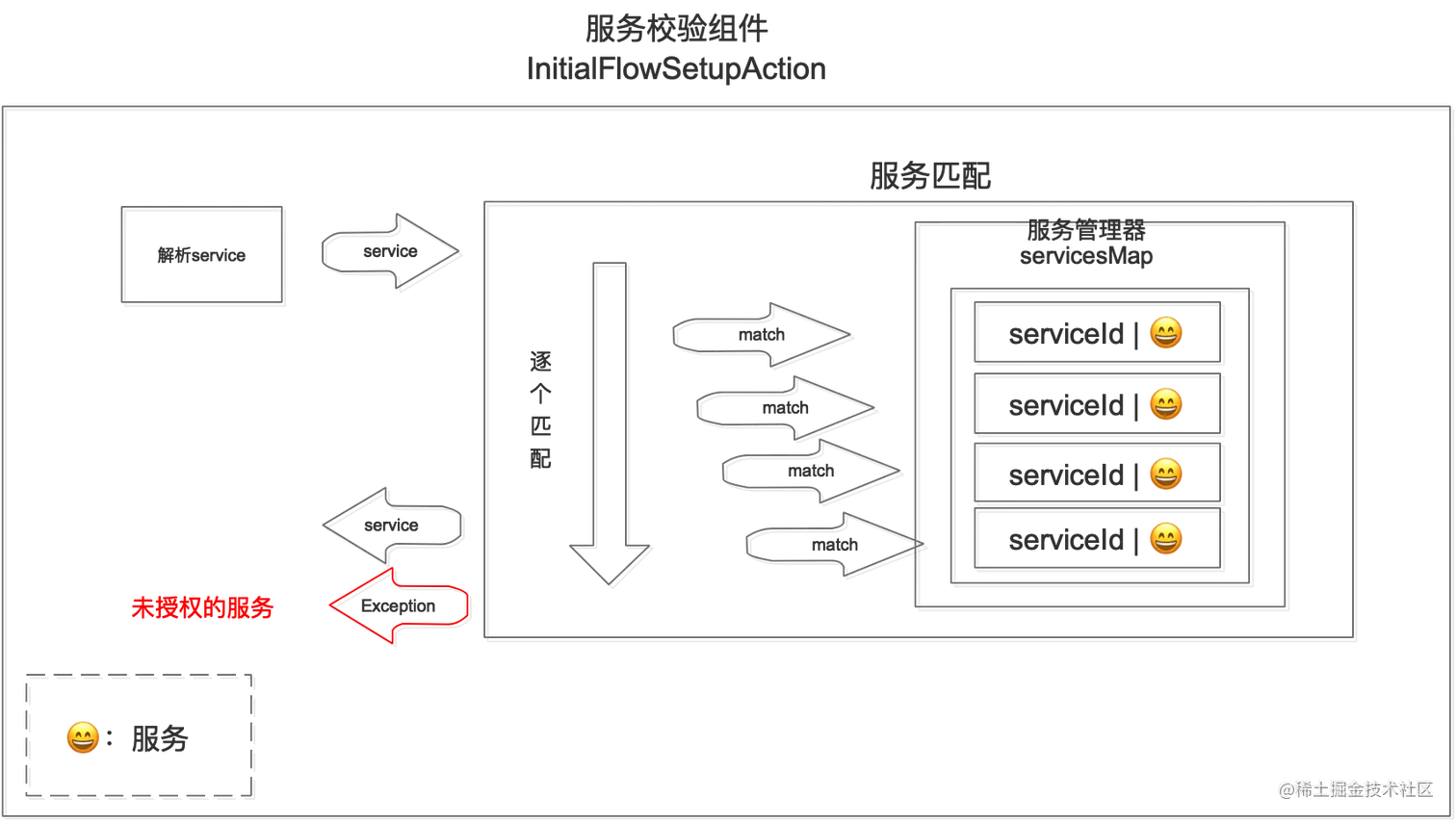 - 然后逐个匹配服务管理器中的授权服务;