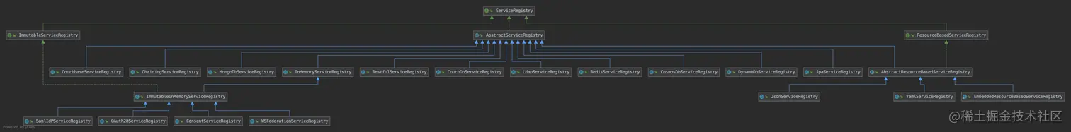CAS中的服务注册中心实现方案通过实现ServiceRegistry接口来实现: