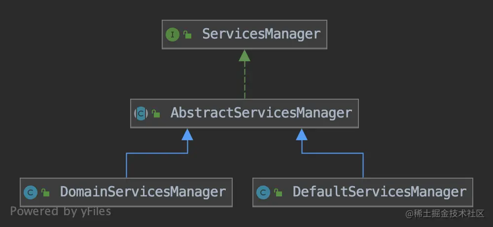 不同的服务管理器还会基于servicesMap将服务保存到自己的服务集合中,以实现个性化管理策略。