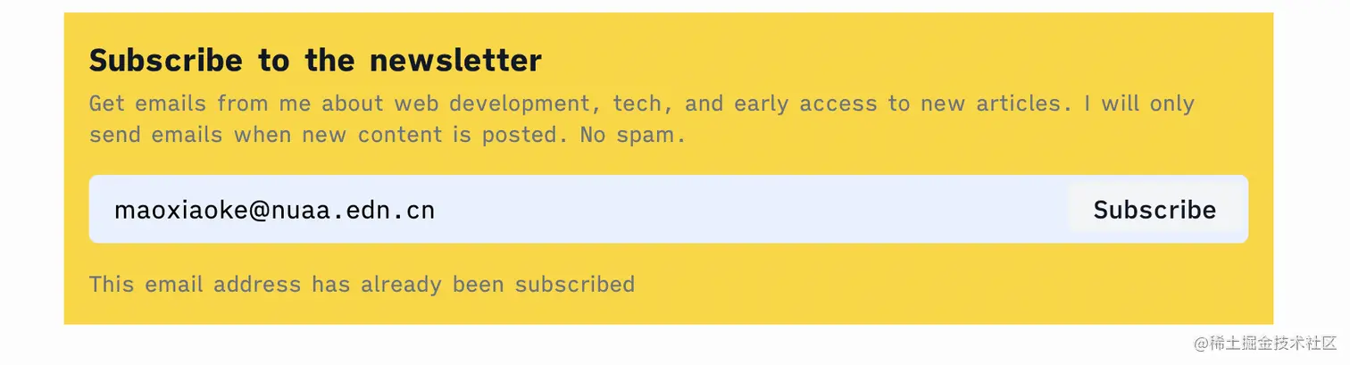 接下来,使用原生的 form 标签实现一个 Subscrible 组件。具体代码如下: