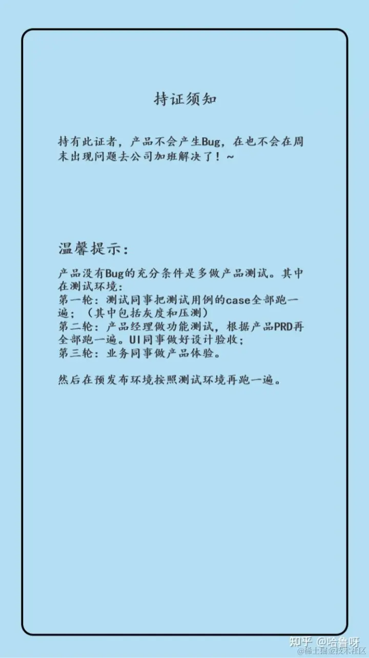 在和测试沟通时,应该在一段时间内所有功能全部再复测一轮。防止潜在问题发生。尤其在版本发布时应该留出足够的测试时间来防止线上问题产生。