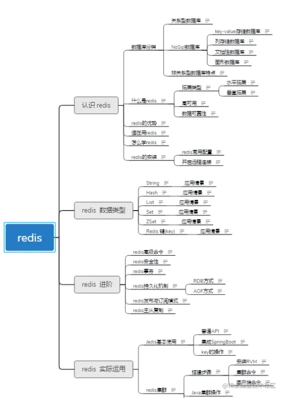 (这里为了方便展示,给大家看的是截图,如需下载xmind原图已经Redis的学习路线大纲图可以直接 评论 “学习” 免费领取)