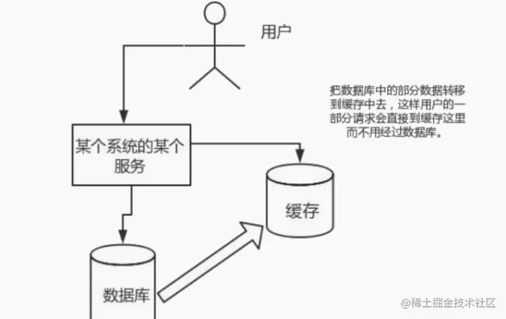 直接操作缓存能够承受的请求是远远大于直接访问数据库的,所以我们可以考虑把数据库中的部分数据转移到缓存中