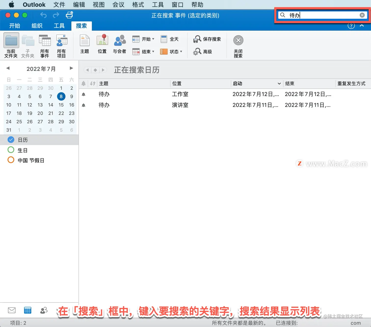 欢迎观看 Microsoft Outlook 中文版教程,小编带大家学习 Outlook 的使用技巧,了解如何在 Microsoft Outlook 中搜索日历项。