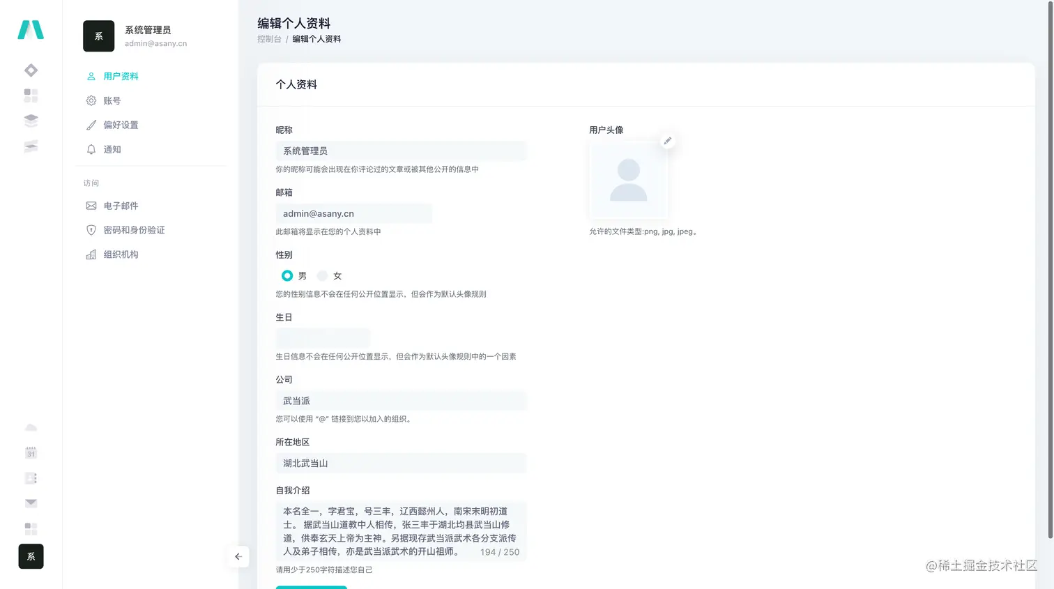 - 修改个人信息