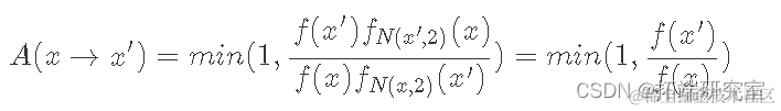 - 根据 A(x→x′) 以均匀概率接受 x′。如果接受到 x' 的转换,否则保持状态 x。