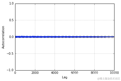 来自我们的 MH 采样器的样本很好地近似于我们的双伽马分布。此外,查看自相关图,我们可以看到它在整个样本中非常小,表明它们是相对独立的。如果我们没有为 T 选择一个好的值或没有预烧期,我们可能会在图中看到较大的值。