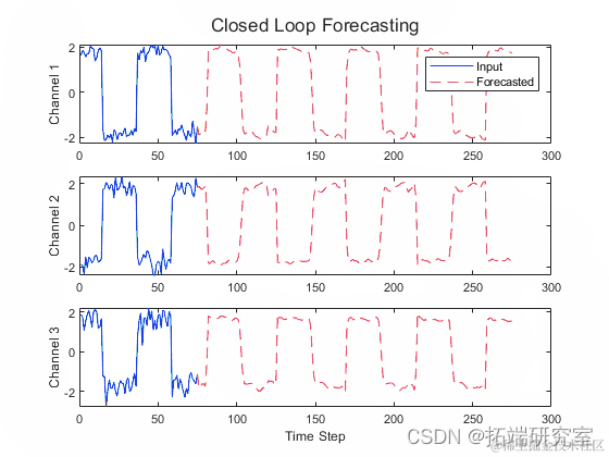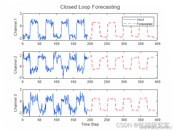 - 闭环预测通过使用先前的预测作为输入来预测序列中的后续时间步长。在这种情况下,模型不需要真实值来进行预测。