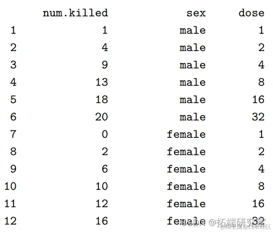 示例 1. 小鼠数据的 GLM 建模(剂量和反应)
