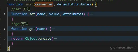 创建init方法 接收两个参数 第一个为导入的defaultConverter转换方法 第二个为默认参数{path:'/'},函数里面有一个set方法和get方法,该函数返回一个对象。