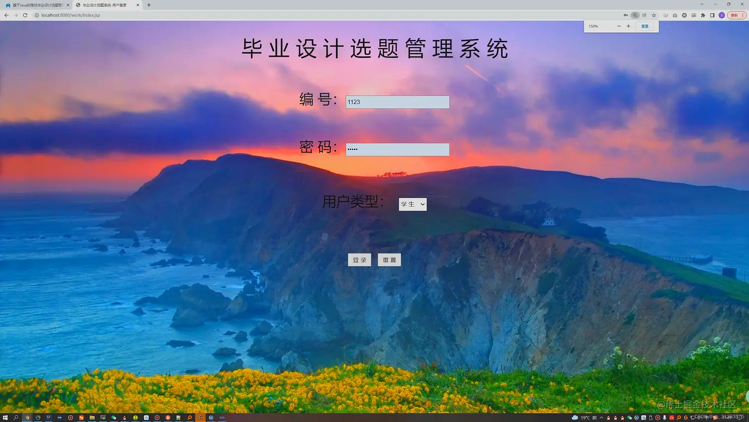 - 运行项目,在浏览器中输入http://localhost:8080/ 登录