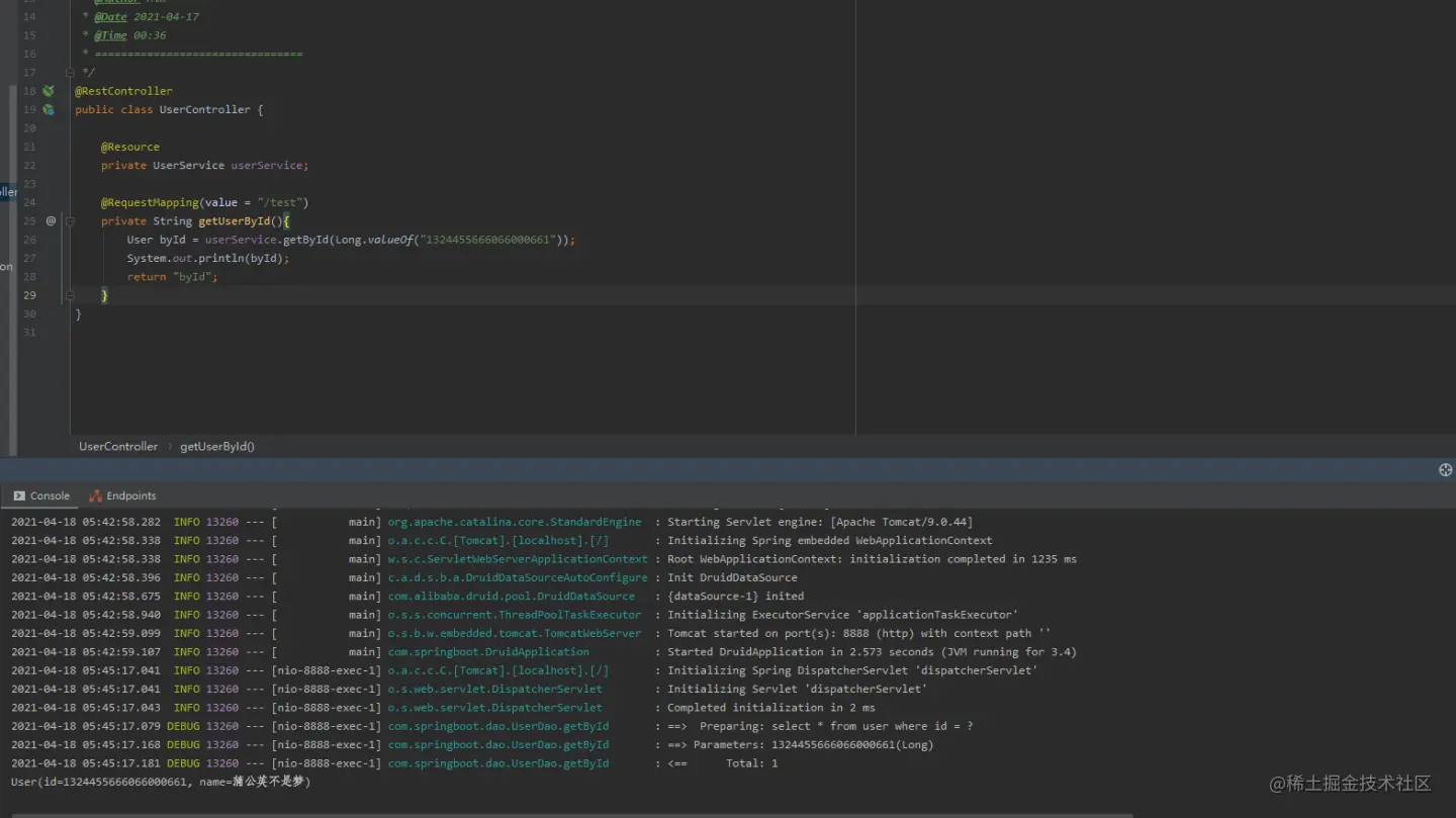 定义测试接口查询数据库: