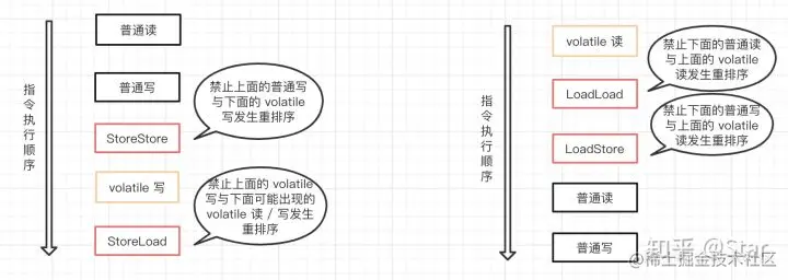 也就是说,编译器不会对 volatile 读与 volatile 读后面的任意内存操作重排序;编译器不会对 volatile 写与 volatile 写前面的任意内存操作重排序。