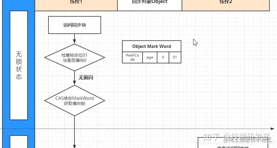 当线程进入 synchronized 时,需要获取 lock 锁,但是在调用 lock.wait() 的时候,此时虽然线程还在 synchronized 块里,但是其实已经释放掉了 lock 锁。