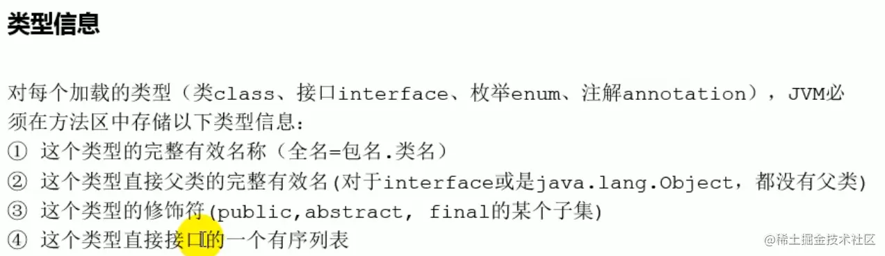 方法区也是线程共享的区域,用于存储已被虚拟机加载的类型信息,常量,静态变量,即时编译器编译后的代码缓存等数据。(域,方法)