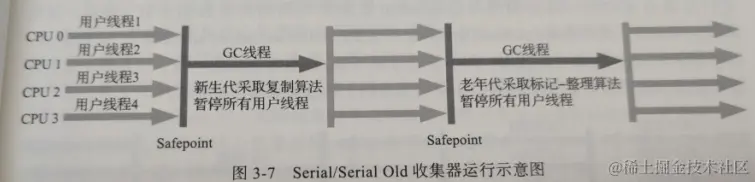 单线程(指STW)工作收集器,简单高效(单线程相比),额外内存消耗最小。