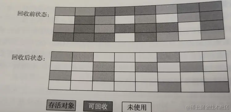 - 内存碎片化:清除后会产生大量不连续的内存碎片,可能会导致分配大对象时找不到足够连续内存不得不提前触发另一次垃圾收集。