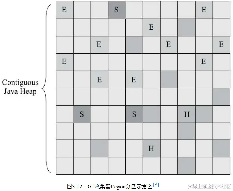 G1仍遵循分代收集理论设计的,但堆内存的布局与其他收集器不同:不再固定大小以及固定数量的分代区域划分,而是把连续的Java堆划分为多个大小相等的独立区域(Region),每一个Region都可以根据需要,扮演新生代的Eden空间、Survivor空间,或者老年代空间。收集器能够对扮演不同角色的Region采用不同的策略去处理。