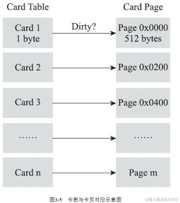 第三种“卡精度”所指的是用一种称为“卡表”(Card Table)的方式去实现记忆集。