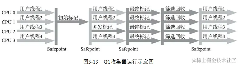 G1收集器大致可划分为以下四个步骤: 仅并发标记是并发的