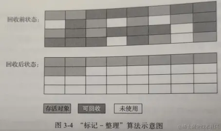 先标记出存活的对象,然后让存活的对象向内存空间的一端移动,接着直接清理掉边界以外的内存。