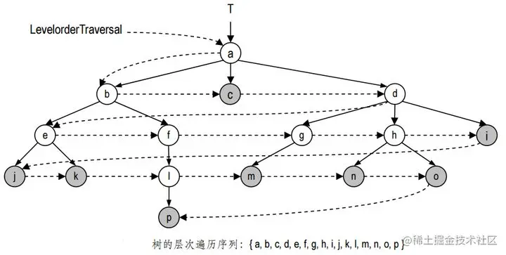 除了上述两种最常见的遍历算法,还有其它一些遍历算法,层次遍历(Traversal by level )算法就是其中的一种。在这种遍历中,各节点被访问的次序取决于它们各自的深度,其策略可以总结为“深度小的节点优先访问”。