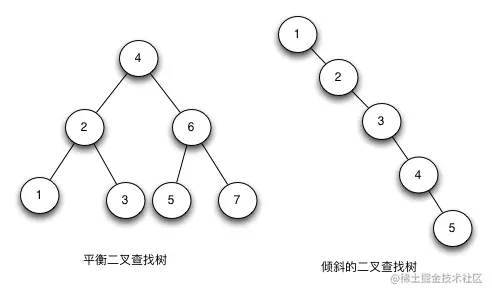BST存在的主要问题是,数在插入的时候会导致树倾斜,不同的插入顺序会导致树的高度不一样,而树的高度直接的影响了树的查找效率。理想的高度是logN,最坏的情况是所有的节点都在一条斜线上,这样的树的高度为N。
