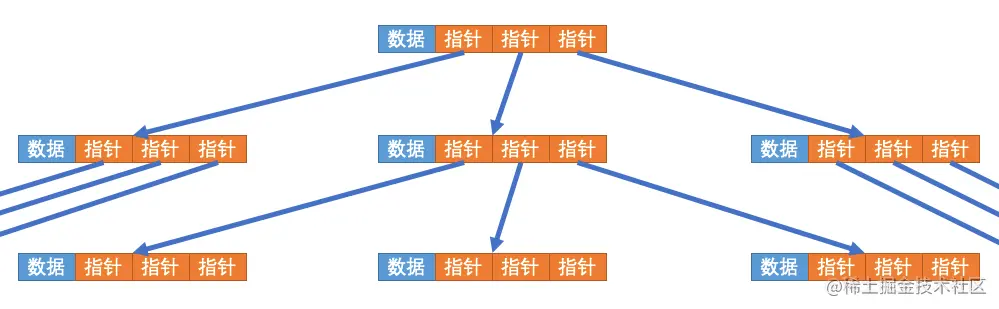 B树:一种对读写操作进行优化的自平衡的二叉查找树,能够保持数据有序,拥有多于两个子树。