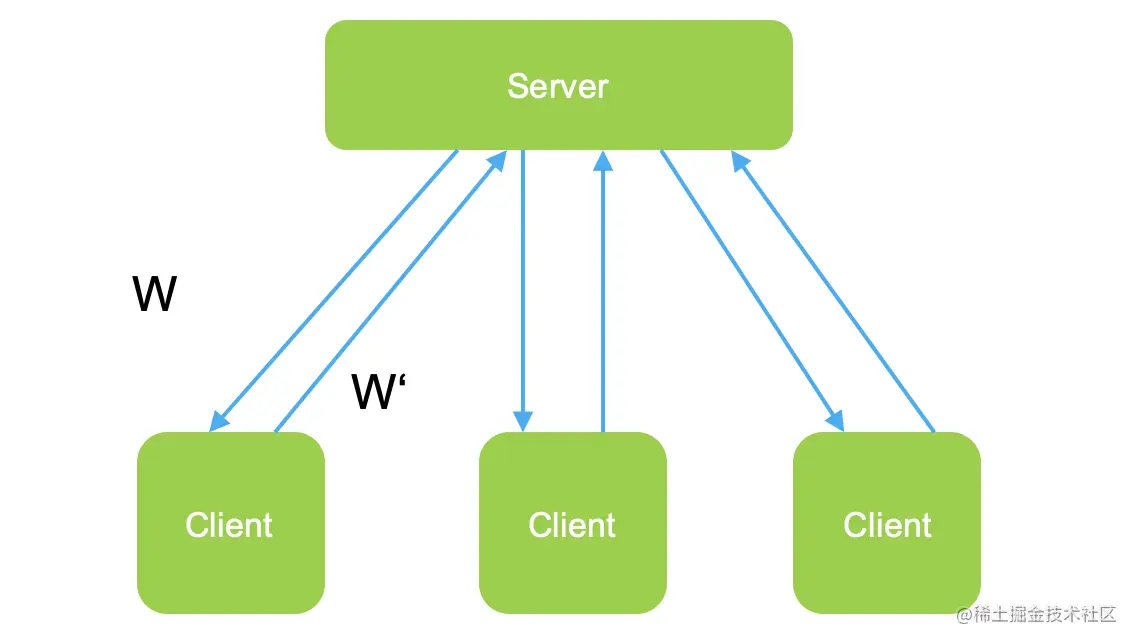 - 客户端将计算的梯度,发送到服务端;