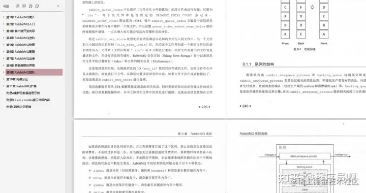 **第 9 章 RabbitMQ 高阶 :**介绍 RabbitM 相关的一些原理,主要内容包括RabbitM 存储机制、磁盘和内存告警、流控机制、镜像队列。了解这些实现的细节及原理十分必要,它们可以让读者在遇到问题时能够透过现象看本质