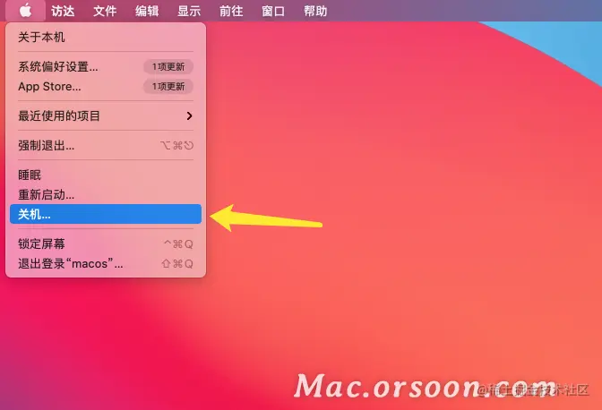 2、在最上面找到苹果图标,然后选择关闭计算机,请注意:是关闭计算机而不是重新启动计算机;
