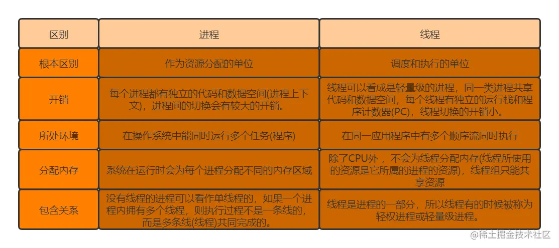 进程和线程的区别: