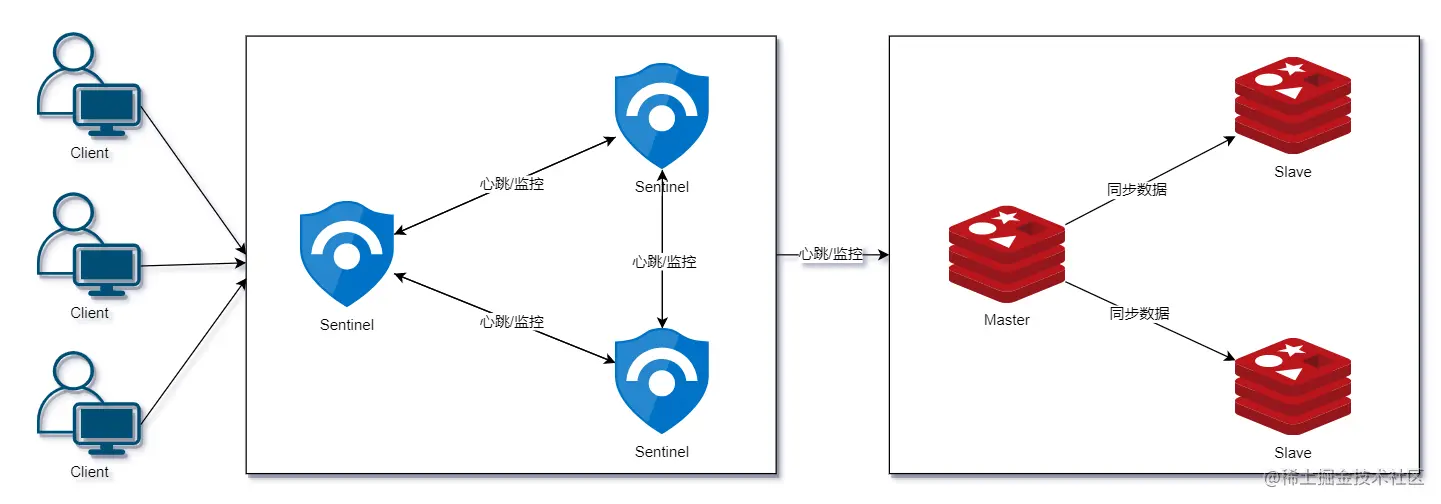 - 当在不同服务器上运行多个 Sentinel 进程,然后将 Sentinel 做集群,即使其中一个故障,也可以进行热切换,降低对客户端的影响,从而提升了系统健壮性