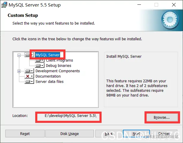 修改文件的安装目录,注意修改后MySQL与Server data files目录一致。