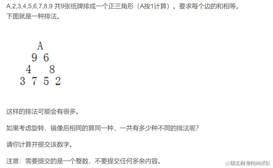 System.out.println(ans / 6); //同一个结果旋转可产生三种相同的结果,再镜像,共6种
