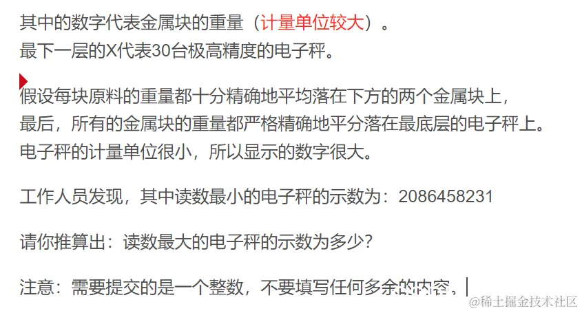 本题的陷阱在于金属块的计量单位较大,而电子秤的计量单位很小,所以要将题中所给的重量乘一个数,可以理解为通过某一个进率将大单位化成小单位