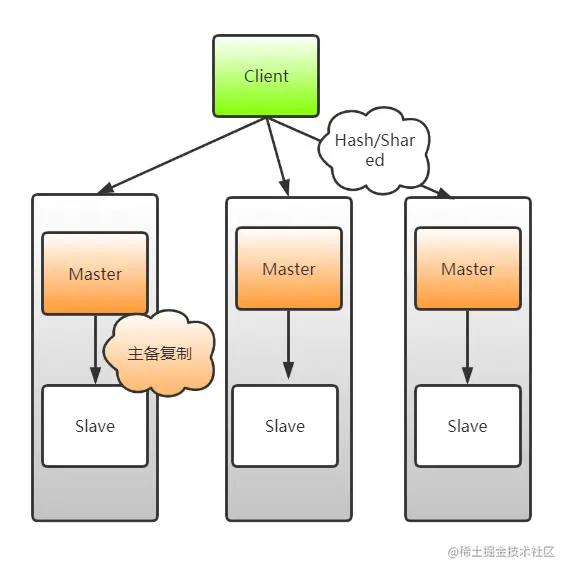 总结下来就是:读请求分配给 Slave 节点,写请求分配给 Master,数据同步从 Master 到 Slave 节点。
